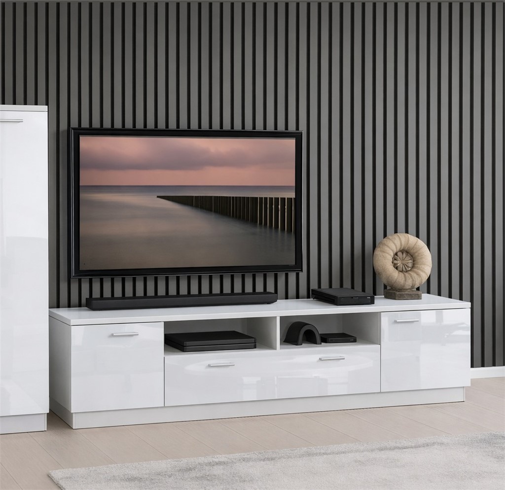 White Gloss TV Unit with Storage Drawer Large Cabinet 65 inch TV Media Stand Sol