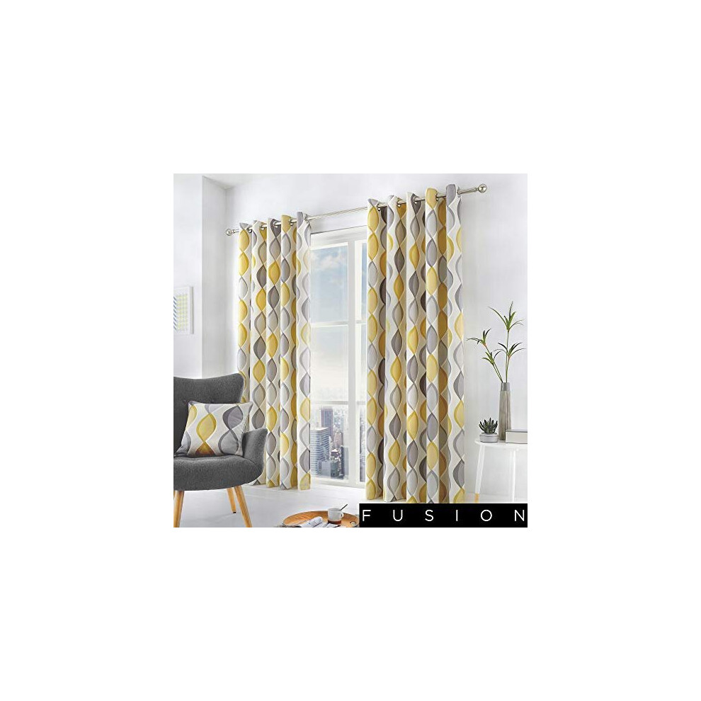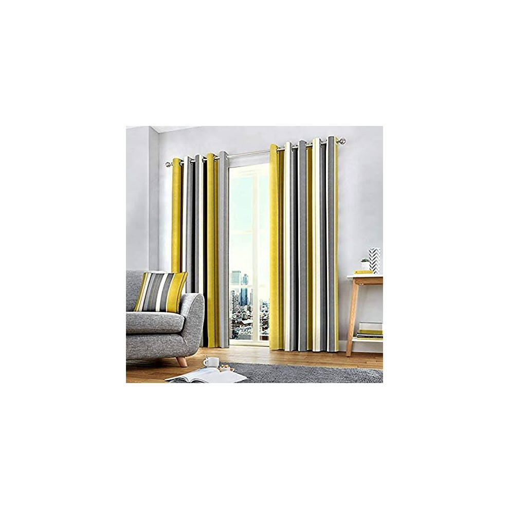 LIKE-NEW Fusion - Whitworth Stripe - 100% Cotton Pair of Eyelet Curtains - 66" Width x 72" Drop (168 x 183cm) in Ochre