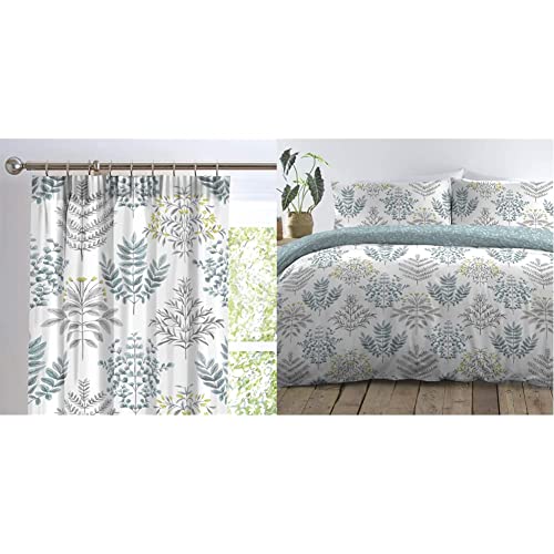 Dreams & Drapes - Emily - Pair of Pencil Pleat Curtains - 66" Width x 72" Drop (168 x 183cm) in Duck Egg & Emily - Easy Care Duvet Cover Set - 3pcs, Double Bed Size in Duck Egg