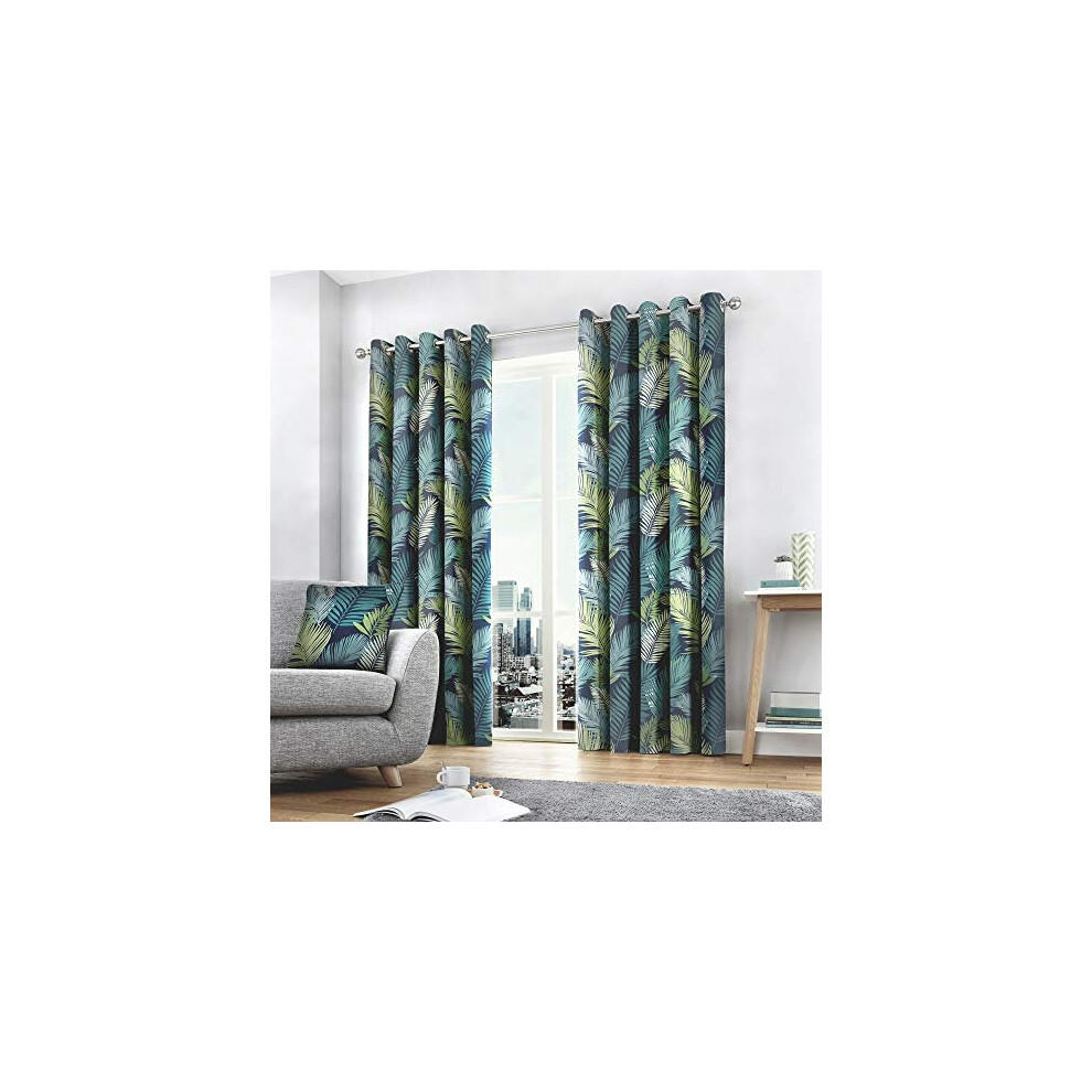 Fusion - Tropical - 100% Cotton Pair of Eyelet Curtains - 66" Width x 72" Drop (168 x 183cm) in Multicolour