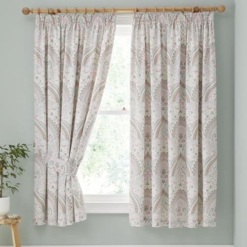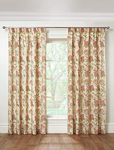 Appletree Heritage - Campion - 100% Cotton Pair of Pencil Pleat Curtains With Tie-Backs - 66" Width x 72" Drop (168 x 183cm) in Green/Coral
