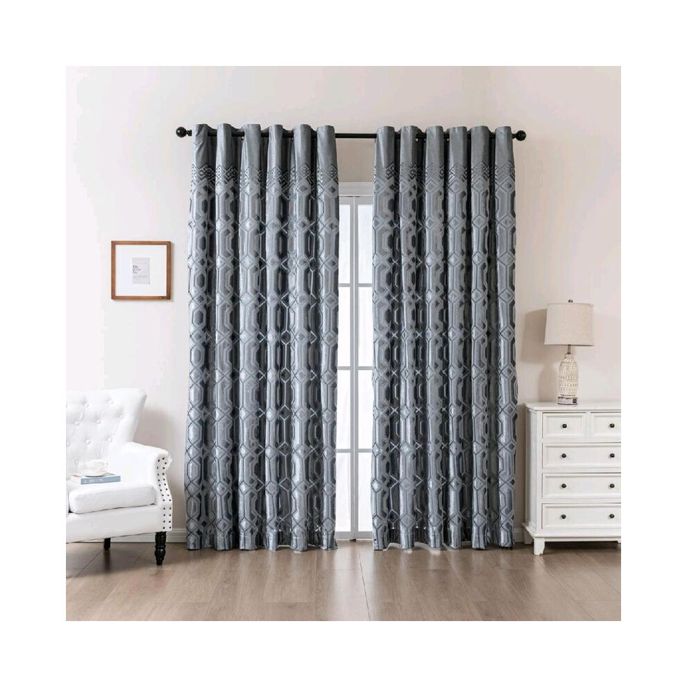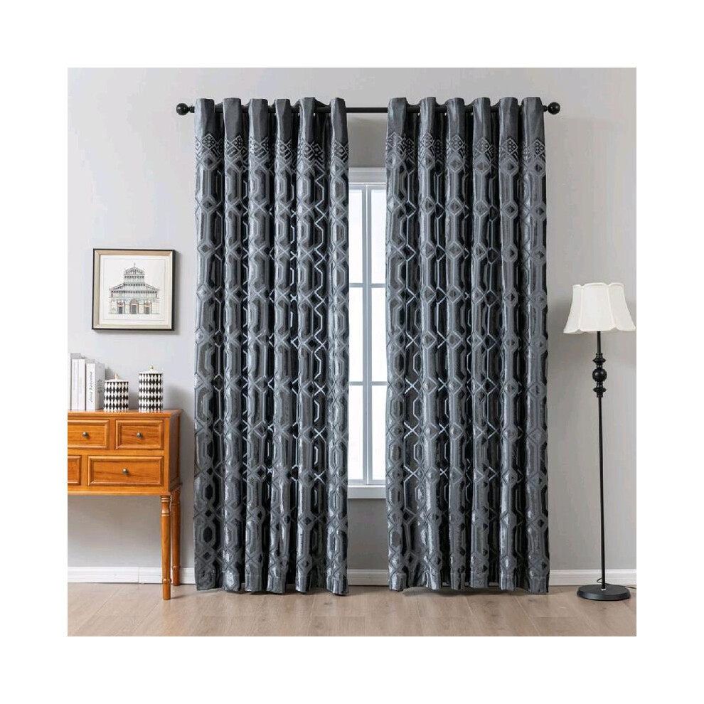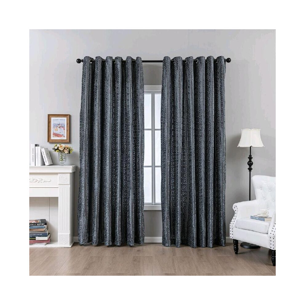(Geometric Charcoal, 66x72cm) Luxurious Ready-Made Pairs of Greek Key Crushed Velvet Grommet Ring Top Curtains in Beige, Silver, and Grey