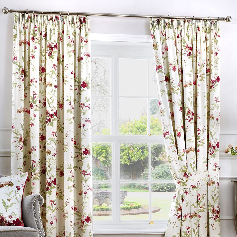 Emma Barclay Harmony - Floral Pencil Pleat Curtains in Cream - Width 66 x Drop 72" (168 x 183cm)