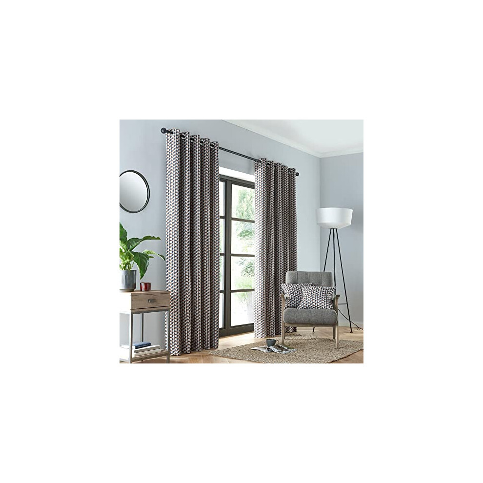 Fusion - Prado - Jacquard Pair of Eyelet Curtains - 66" Width x 72" Drop (168 x 183cm) in Grey/Terracotta