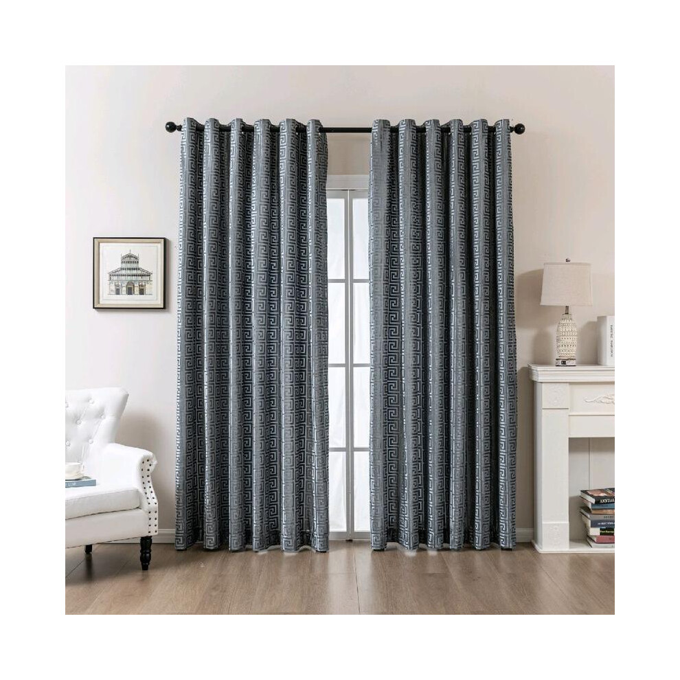 (Grey, 66x72cm) Luxurious Ready-Made Pairs of Greek Key Crushed Velvet Grommet Ring Top Curtains in Beige, Silver, and Grey