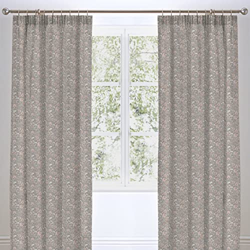 Appletree - Grey Floral Curtains W66 x L72 (168 x 183cm) - 2 Panels - Blackout Curtains - 100% Cotton - Lined - Flower Print Curtains in Grey - Vintage Grey Pencil Pleat Curtains - Pleated Curtains