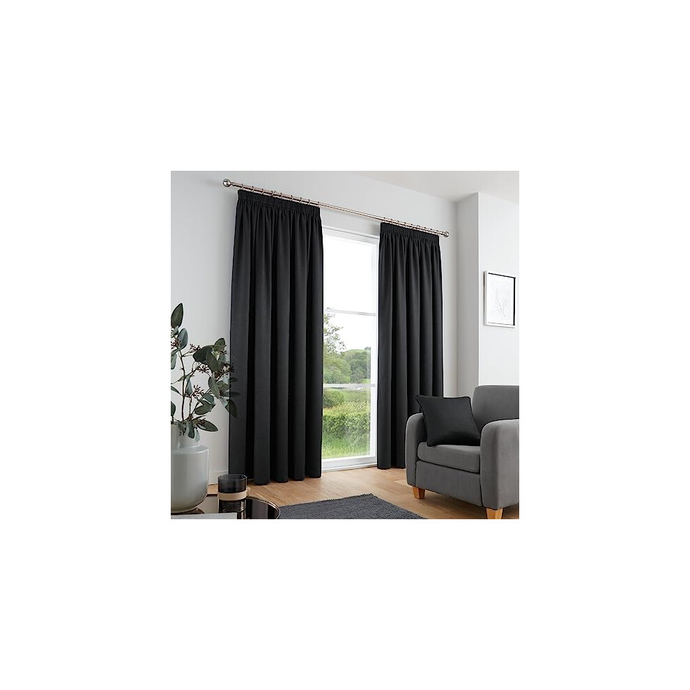 Fusion - Galaxy - Dim out woven Pair of Pencil Pleat Curtains - 66" Width x 72" Drop (168 x 183cm) in Black
