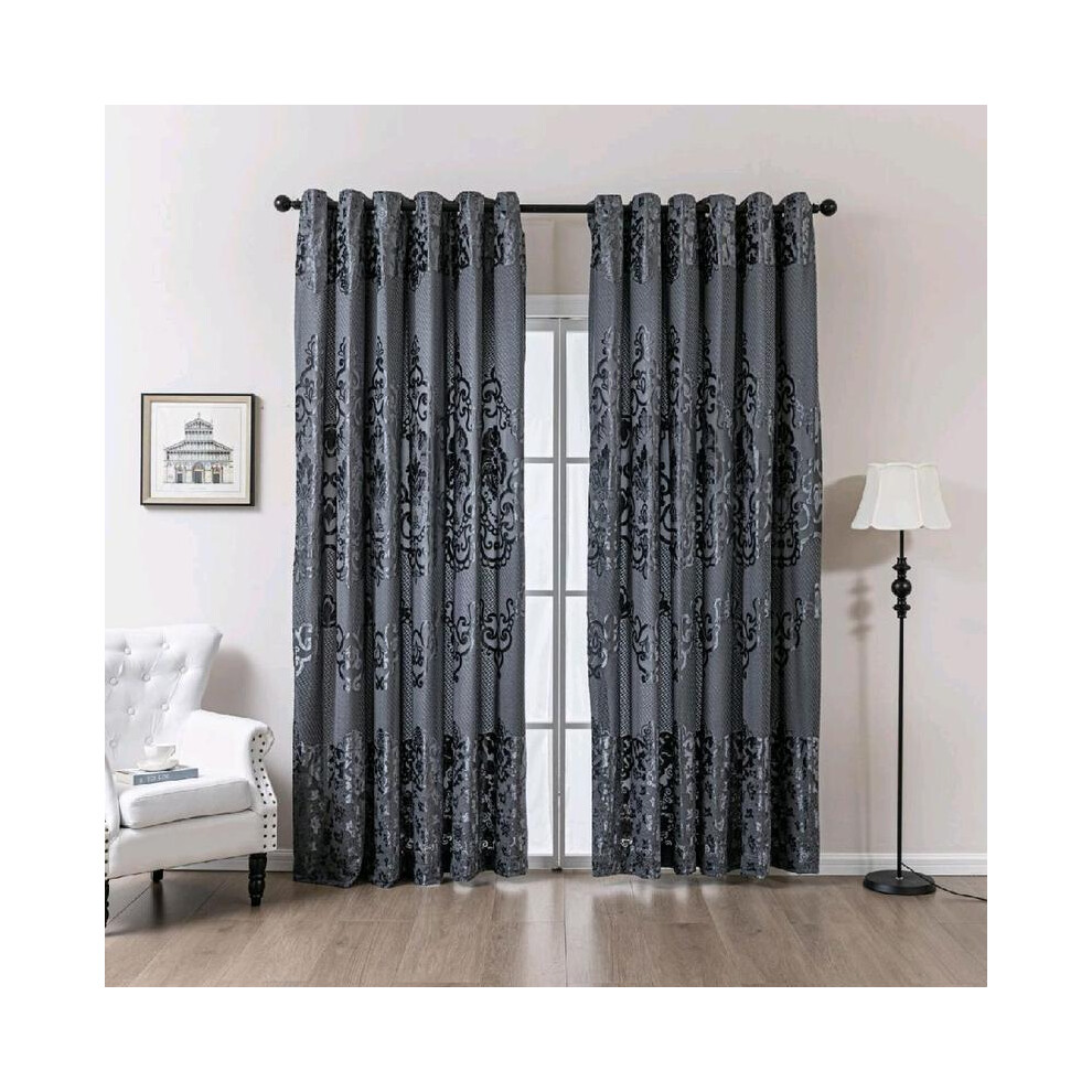 (Damask Charcoal, 66x72cm) Luxurious Ready-Made Pairs of Greek Key Crushed Velvet Grommet Ring Top Curtains in Beige, Silver, and Grey