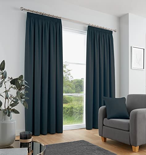 Fusion Sage Green Blackout Pencil Pleat Curtains – Pair W66 x L72" (168 x 183cm) – Thermal Light-Blocking Drapes for Bedroom or Living Room – Energy-Efficient Window Panels in Soft Green
