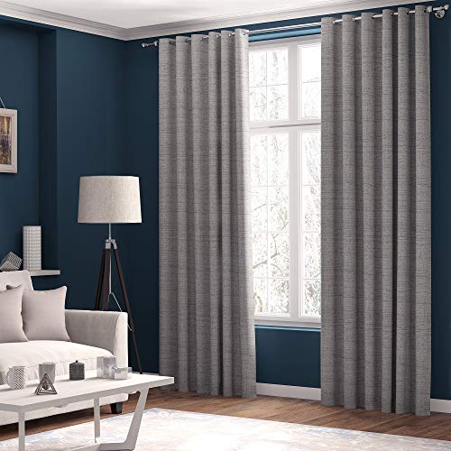 Curtains Faux Linen, Thermal Insulated, 3 Pass 100 % Blackout Eyelet Curtains, (2 Panels) Window Curtains/Panels/Drapes, 168 cm per Panel Width available in 3 drops (Silver, 66 x 72 inch 168 x 183 cm)