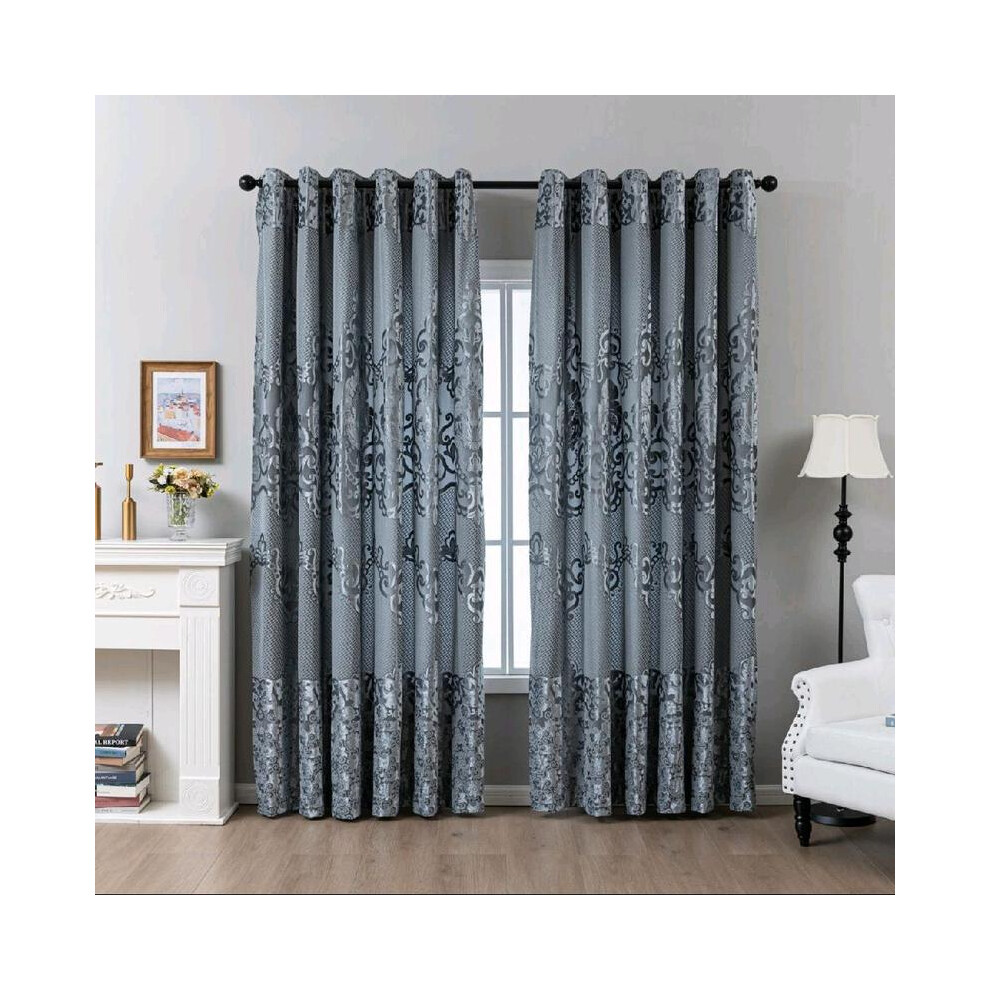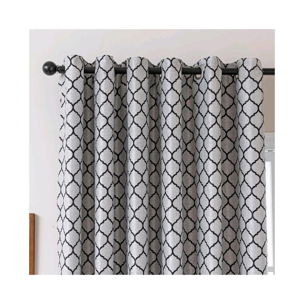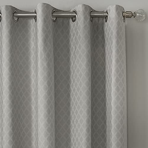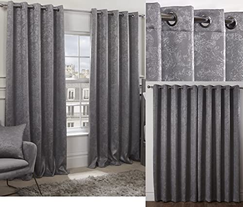 Curtina - Luxury Silver Curtains W66 x L72" (168 x 183cm) - Silver Geometric Curtains - Eyelet Curtains in Silver - Jacquard Curtains & Drapes for Bedroom/Living Room - Silver Leaf/Leaves Curtains
