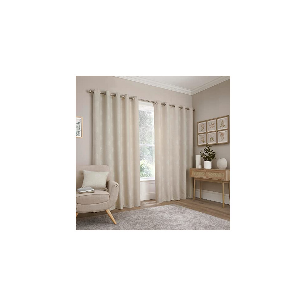 Appletree Loft - Harvest - Jacquard Pair of Eyelet Curtains - 66" Width x 72" Drop (168 x 183cm) in Natural