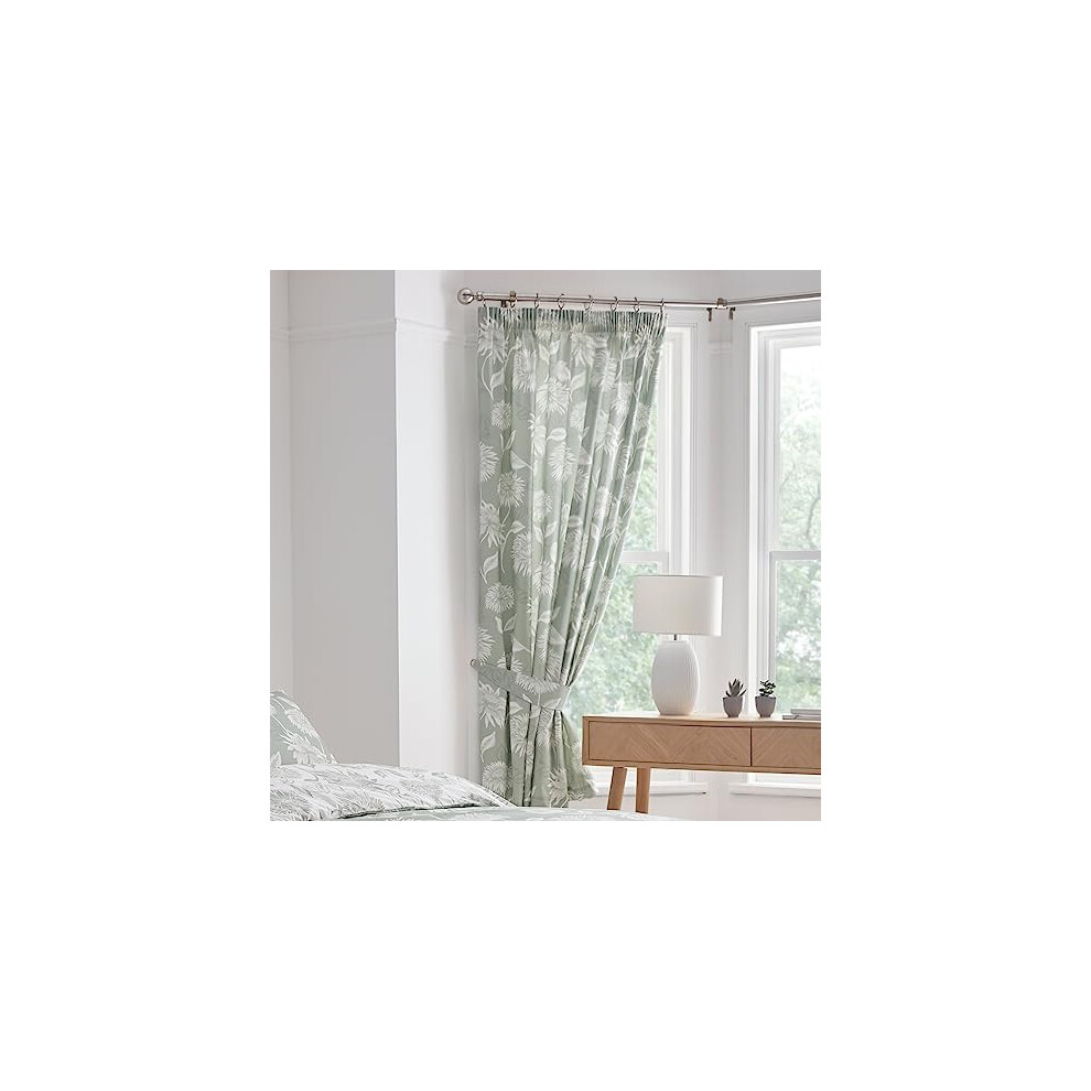 Design - Chrysanthemum - Pair of Pencil Pleat Curtains With Tie-Backs - 66" Width x 72" Drop (168 x 183cm) in Green