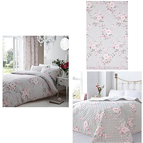 Catherine Lansfield Canterbury King Duvet Set - Pencil Pleat Curtains, Bedspread in Grey - 66 x 72 Inches, 240 x 260 cm