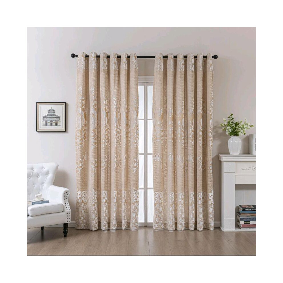 (Damask Beige, 66x72cm) Luxurious Ready-Made Pairs of Greek Key Crushed Velvet Grommet Ring Top Curtains in Beige, Silver, and Grey