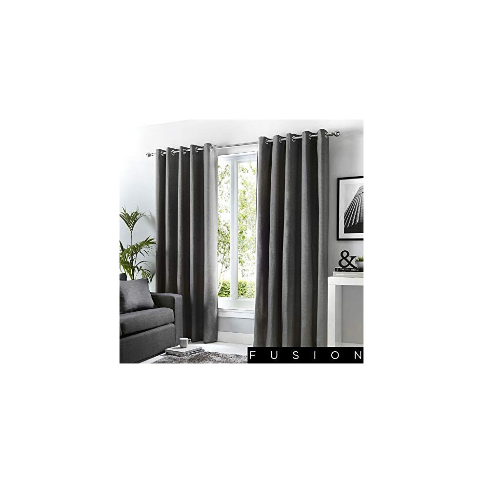 Fusion - Sorbonne - 100% Cotton Pair of Eyelet Curtains - 66" Width x 72" Drop (168 x 183cm) in Charcoal