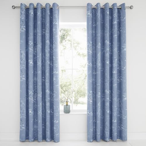 Dreams & Drapes Design - Oriental Garden - Blackout Pair of Eyelet Curtains - 66" Width x 72" Drop (168 x 183cm) in Blue