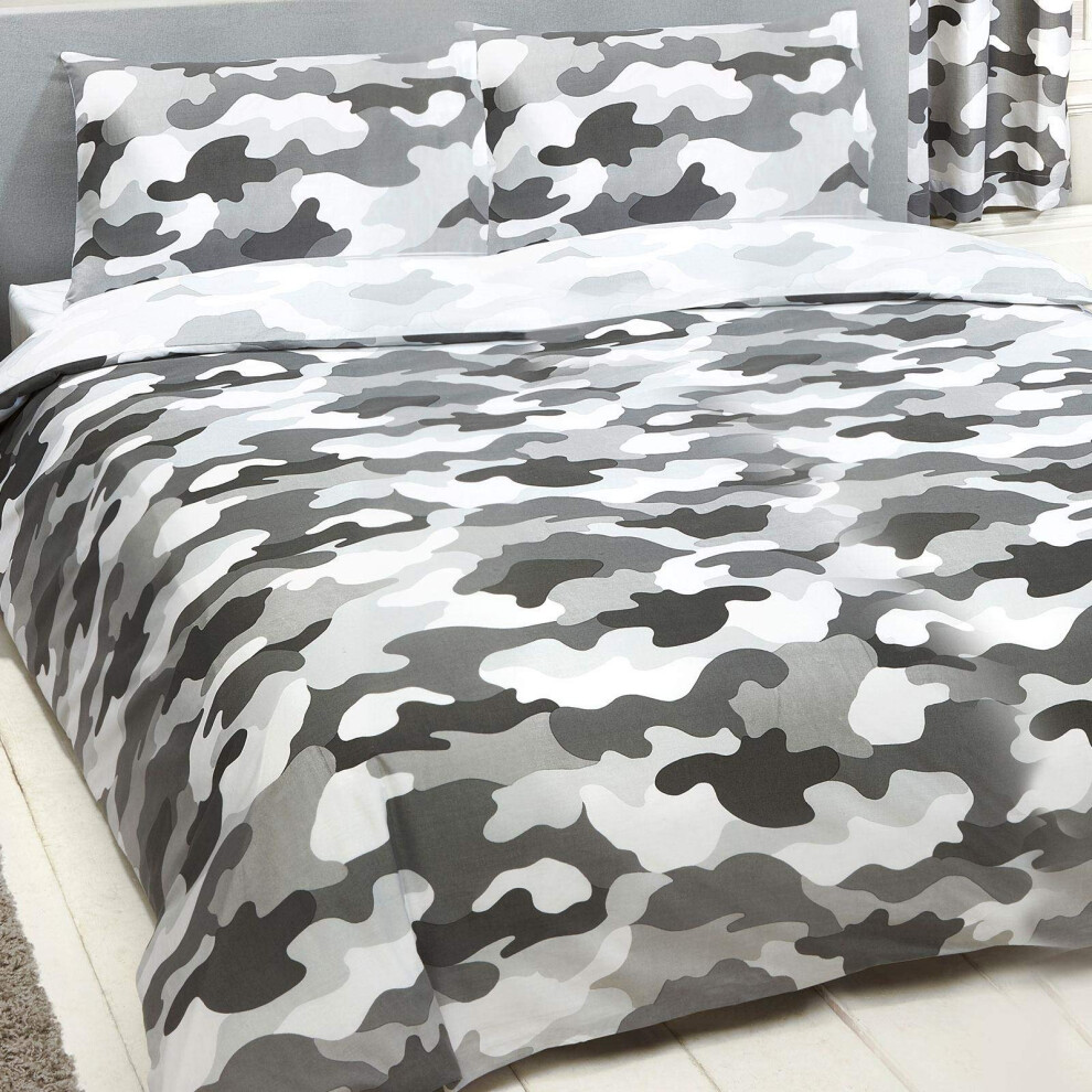 Price Right Home Camouflage Grey Double Duvet Cover Cover Set + Matching Curtains 66in x 72in (168cm x 183cm)