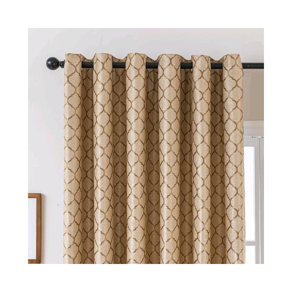 (Lattice Beige, 66x72cm) Luxurious Ready-Made Pairs of Greek Key Crushed Velvet Grommet Ring Top Curtains in Beige, Silver, and Grey