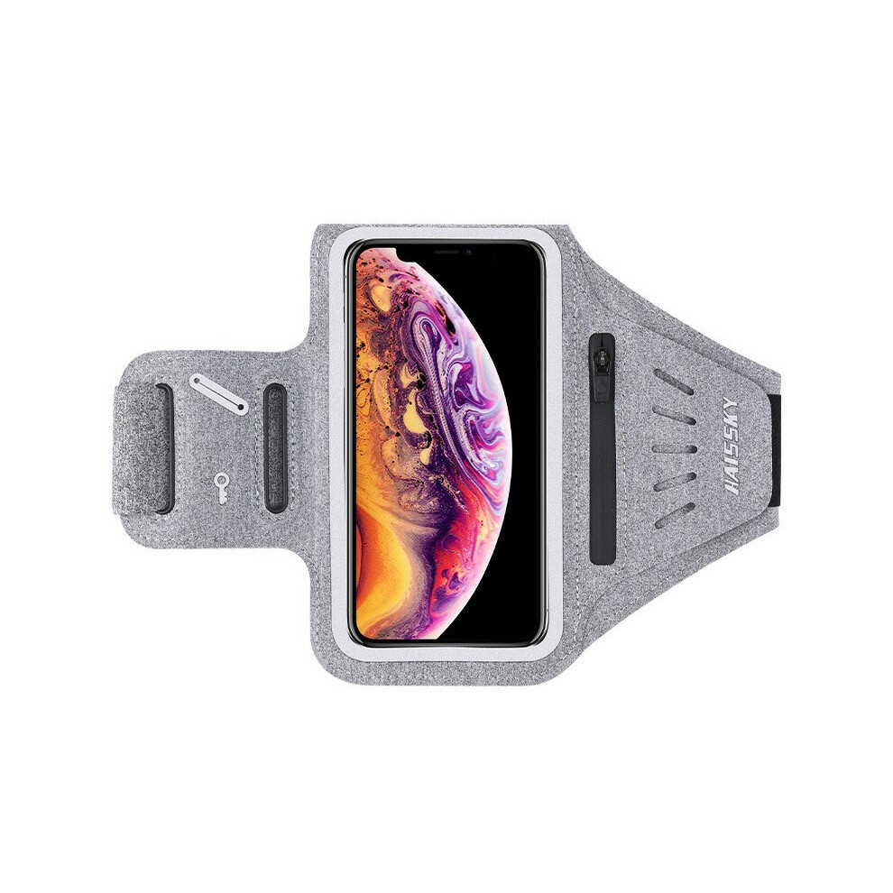 (Grey) HAISSKY HSK3061 Fitness Running Arm Bag 6.8-inch Phone Touch Screen Armband Storage Bag - Black