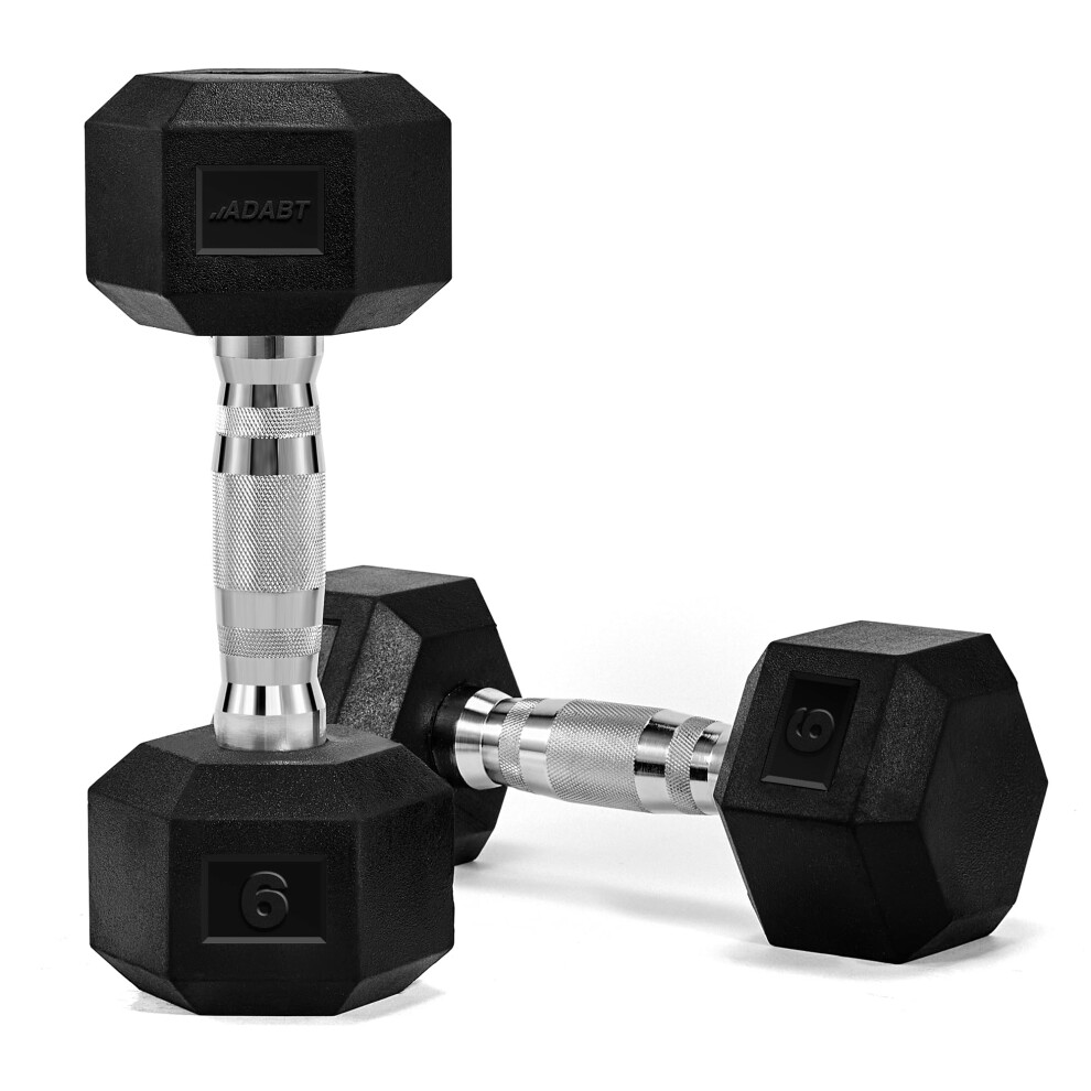 ADABT Hex Dumbbells Rubber Encased Free Weights with Knurled Steel Handles AntiRoll Design Home Gym Fitness Strength Training 12KG Pair 2 x 6KG
