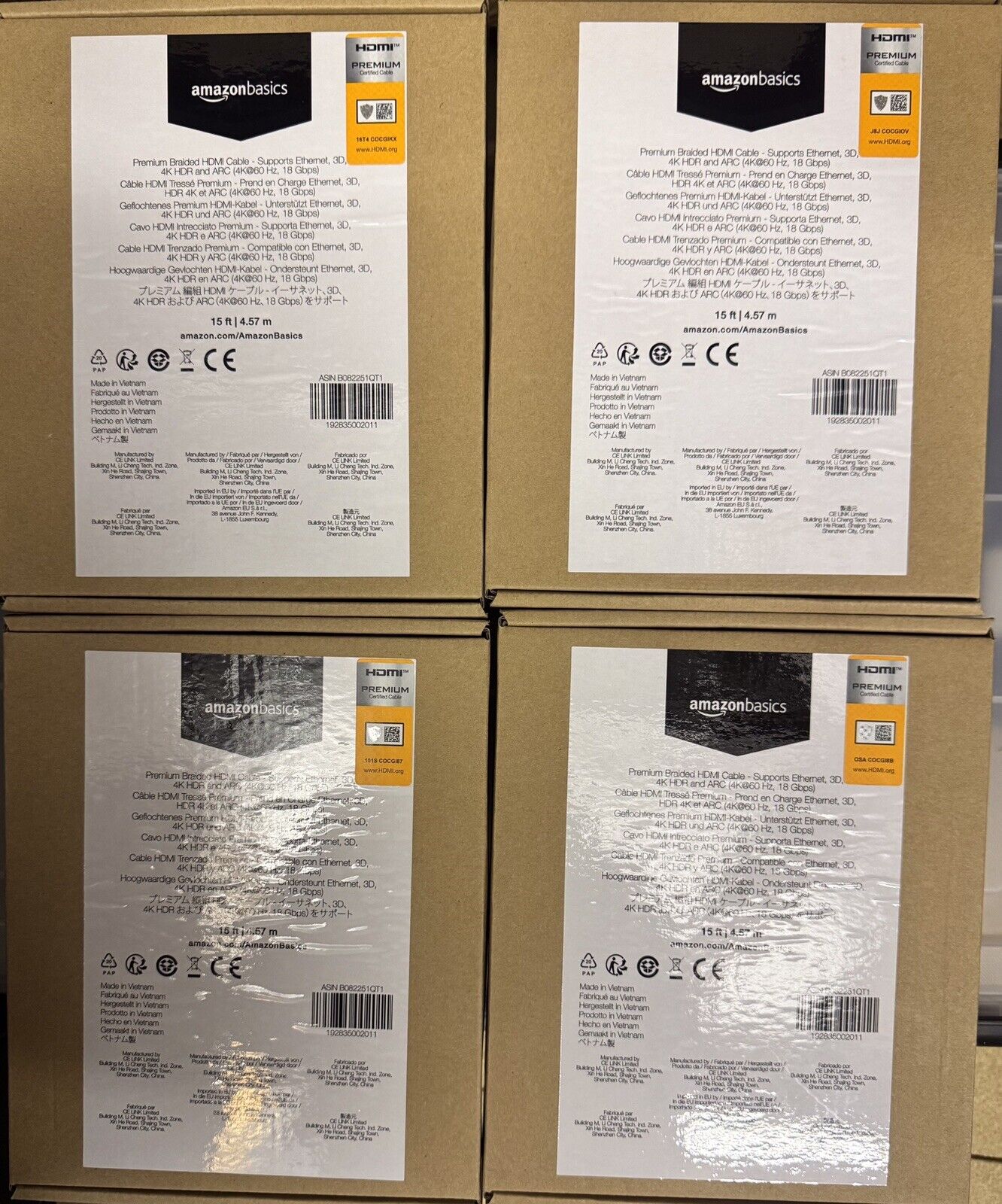 Amazon Premium Braided HDMI Cable Ethernet 3D 4K HDR 18 Gbps 15ft 4.6m New X4