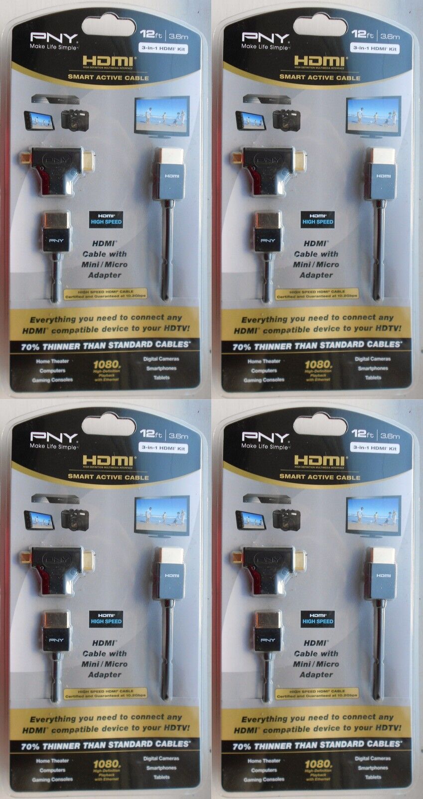 4 x PNY HDMI CABLE 3.6m 12ft LONG 1080p + mini/micro adapter high speed