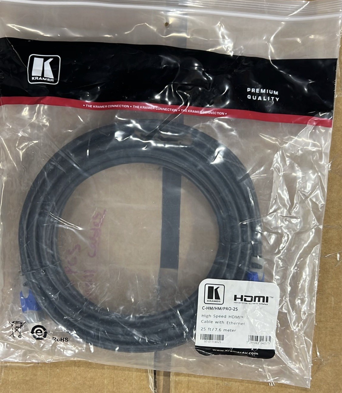 Kramer Electronics High Speed HDMI 7.6M Type-A Male to Male Cable with Ethernet