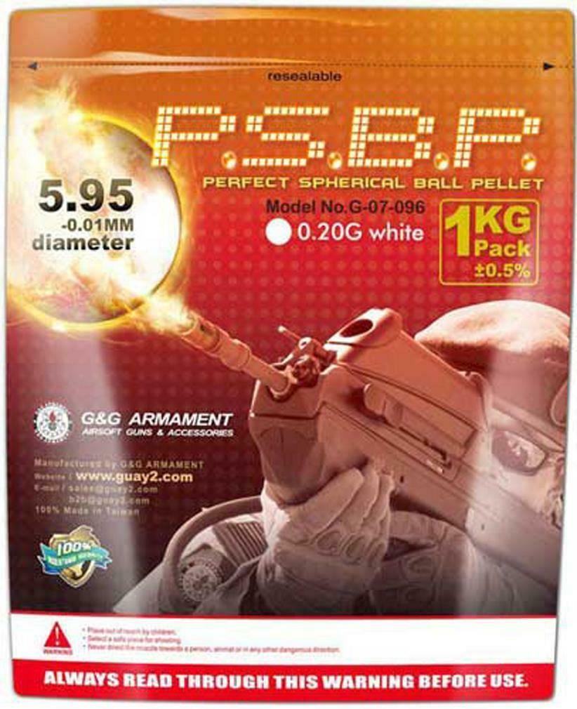 G&G 0.2g 1 Kg Pellets 5000 White 0.2 6mm bb's Airsoft Pellets White G-07-096