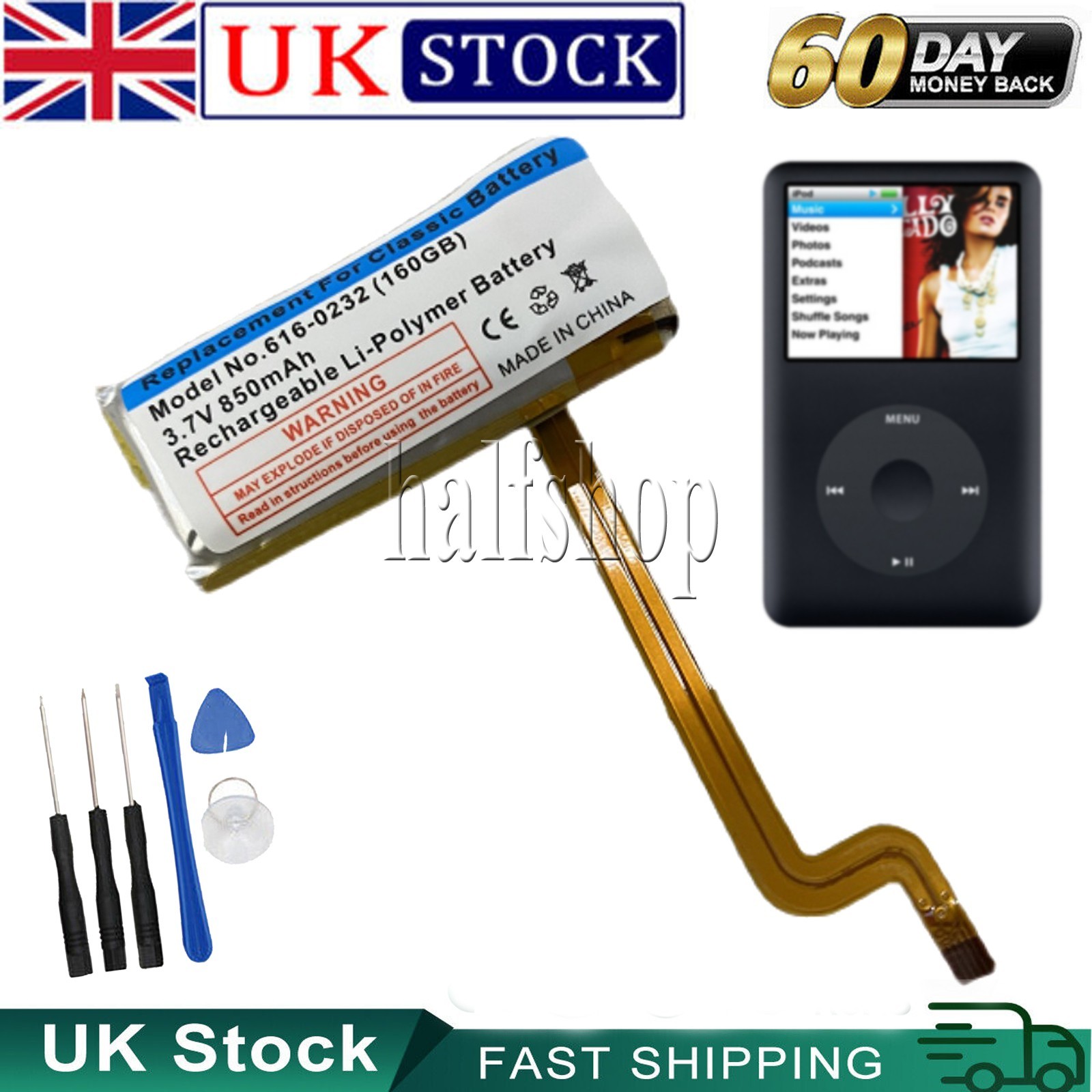 616-0232 Battery replacement for your iPod 6th Gen Classic 160GB (thick version)