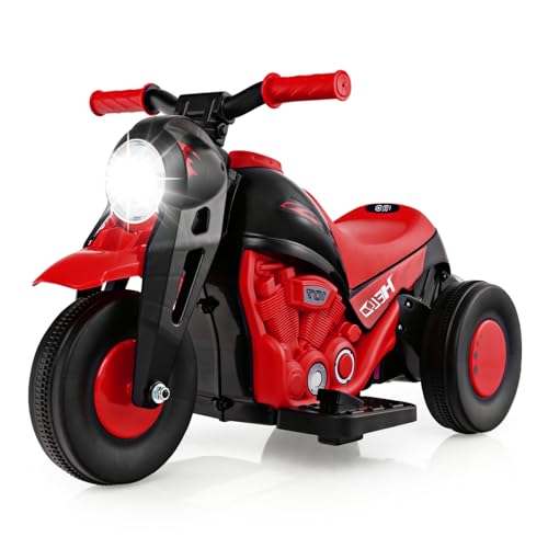 COSTWAY Kids Electric Motorcycle, 6V Battery Powered Motorbike with Horn, Headlight, Forward/Reverse Switch, 3 Wheel Ride on Toy Car Trike for Boys Girls (Red)