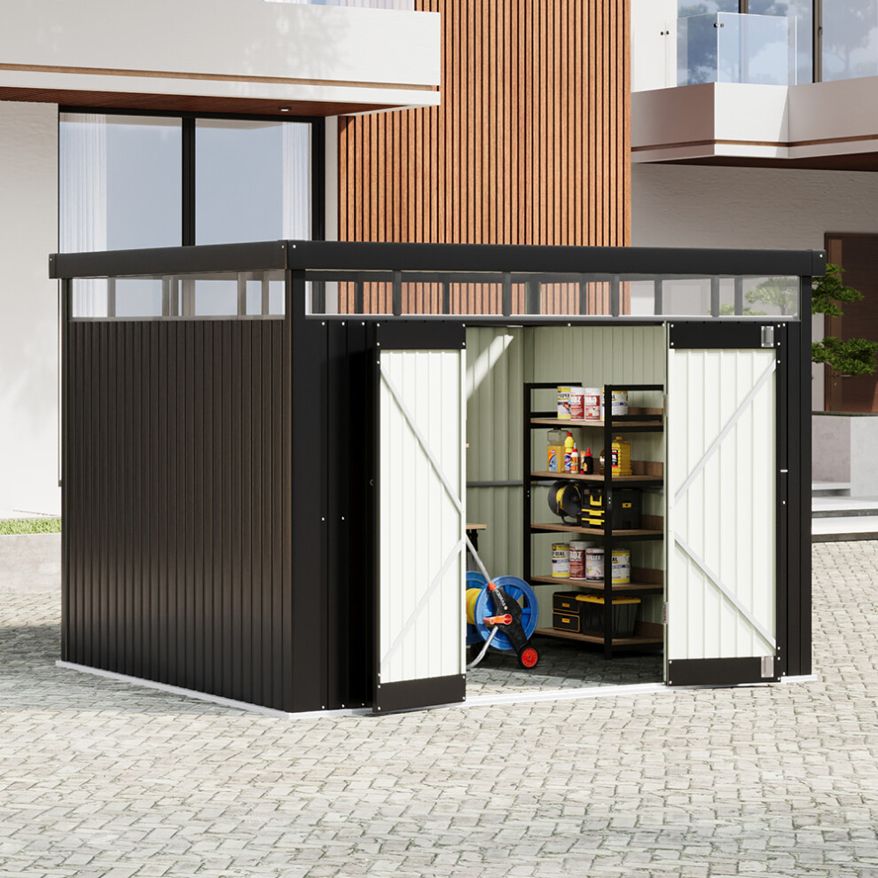 2.6x3x2m Charcoal Black Galvanized Steel Storage Shed with Lockable Doors