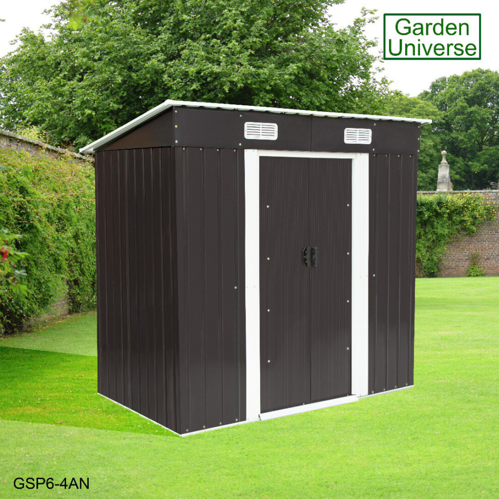 Garden Universe Metal Garden Shed 6' x 4' Pent Roof Storage Anthracite Grey FREE Base Frame GSP6-4AN