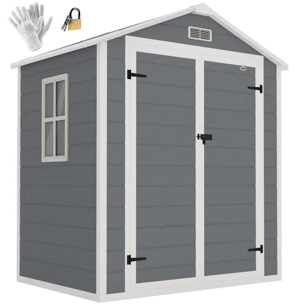 Outsunny 6 x 4ft Resin Garden Shed with Floor and Window, Grey