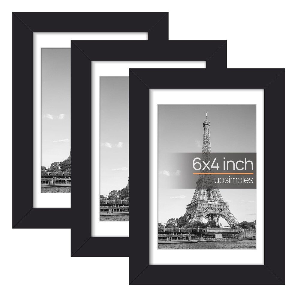 upsimples 6x4 Photo Frames, Black Picture Frames 6 x 4 inches 3.5x5 with Mat or 4 x 6 Without, Wall Hanging Photo Frames