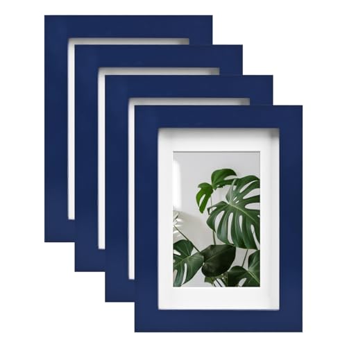EGOFINE 6x4 Photo Frames Set of 4,Solid Wood Frames with Acrylic Glass,Matted for 3.5x5/4x6 inch Picture,6x4 Picture Frames for Tabletop and Wall Mounting,10x15cm Small frames for Printing,Navy Blue