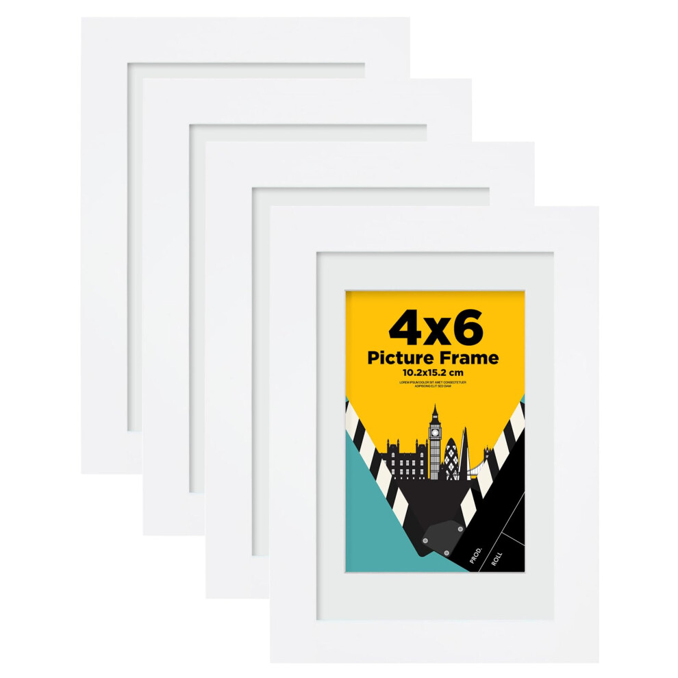 EGOFINE 6x4 Photo Frames,100% Solid Wood Frames with Acrylic Glass Set of 4,Matted for 3.5x5/4x6 inch Picture,6x4 Picture Frames for Tabletop and Wall Mounting,10x15cm Small frames for Printing,White