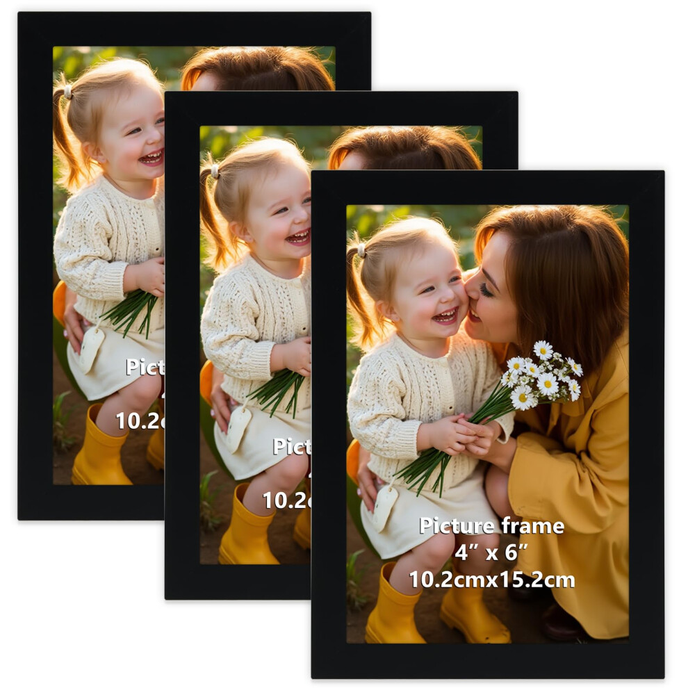 Hoikwo Black 6x4 Photo Frames Pack of 3, Picture Frames 6x4 for Wall or Tabletop Display, Horizontal & Vertical Orientation