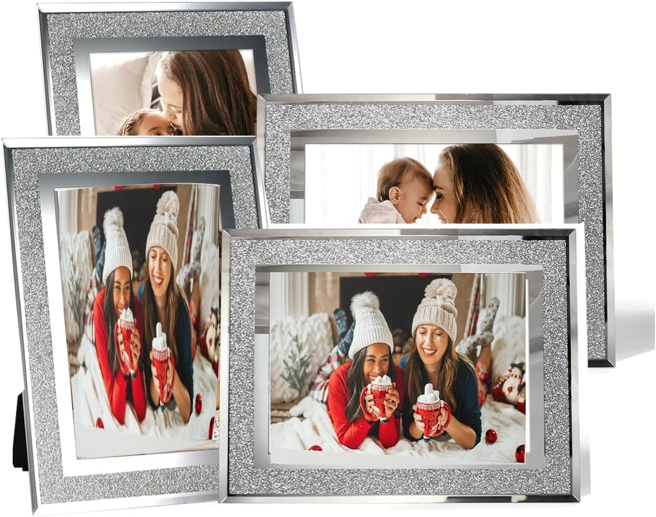 4PCS 6X4 Photo Frames, Silver Crystal Picture Frames, Glass Picture Frames, Spar