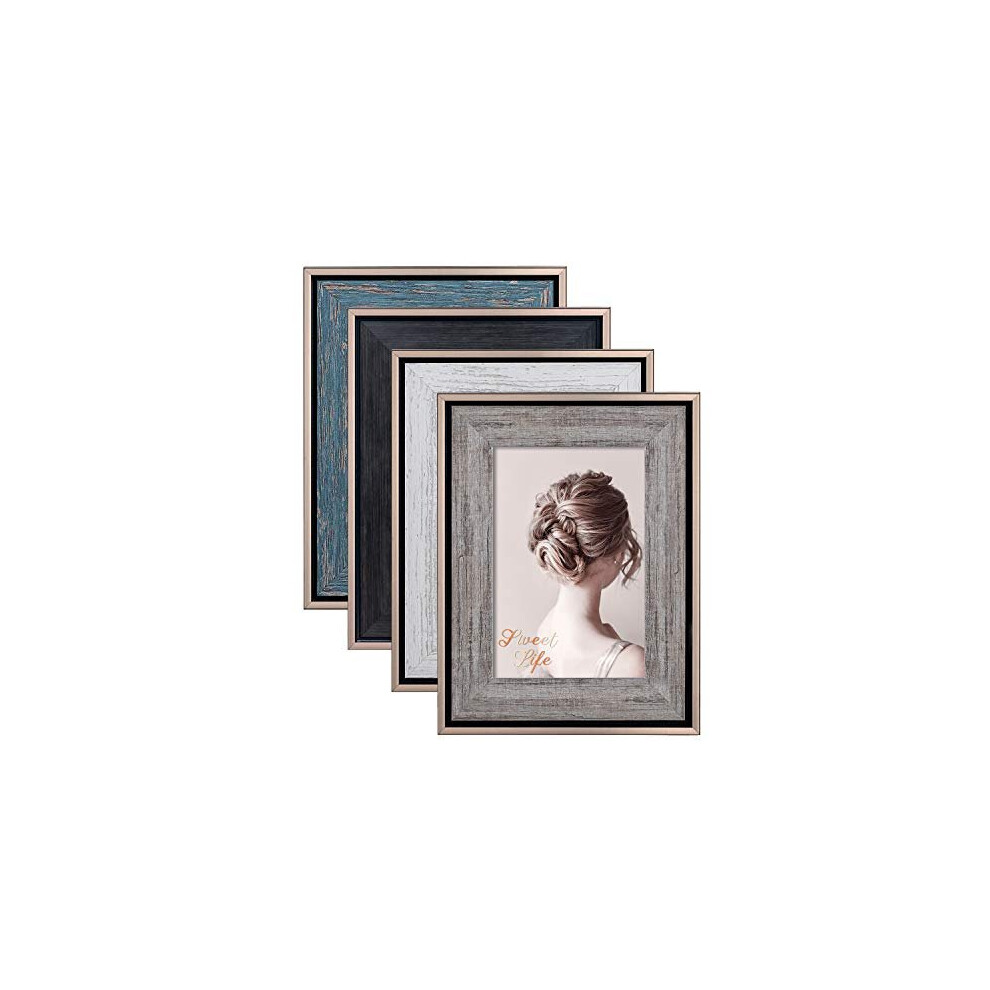 6x4 Photo Frames Rustic Picture Frame Prints Wall Tabletop Display, Set of 7