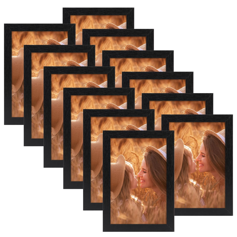 EXYGLO Black 6x4 Photo Frames Set of 12, Multiple Picture Frames 6x4, 4x6 Photo Frame for Wall & Tabletop Display
