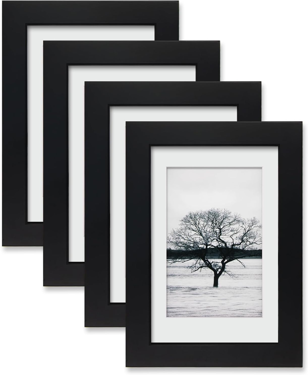 6x4 Photo Frames Set of 4 - Made of Solid Wood for Table Top Display and Wall Mounting photo frame Black