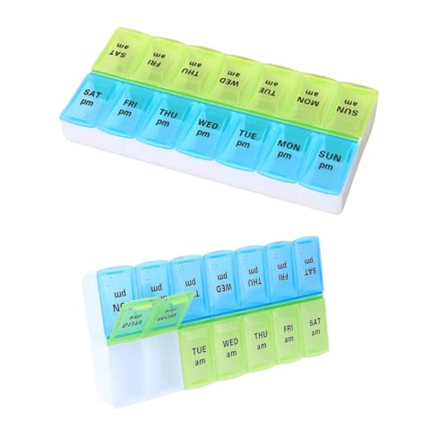 JIIJCAAC 7-Day Pill Box - Pill Boxes 7 Day 2 Times A Day-Daily Medication, Pill Organiser,Tablet Tablet Organiser for Travel (Blue-Green)
