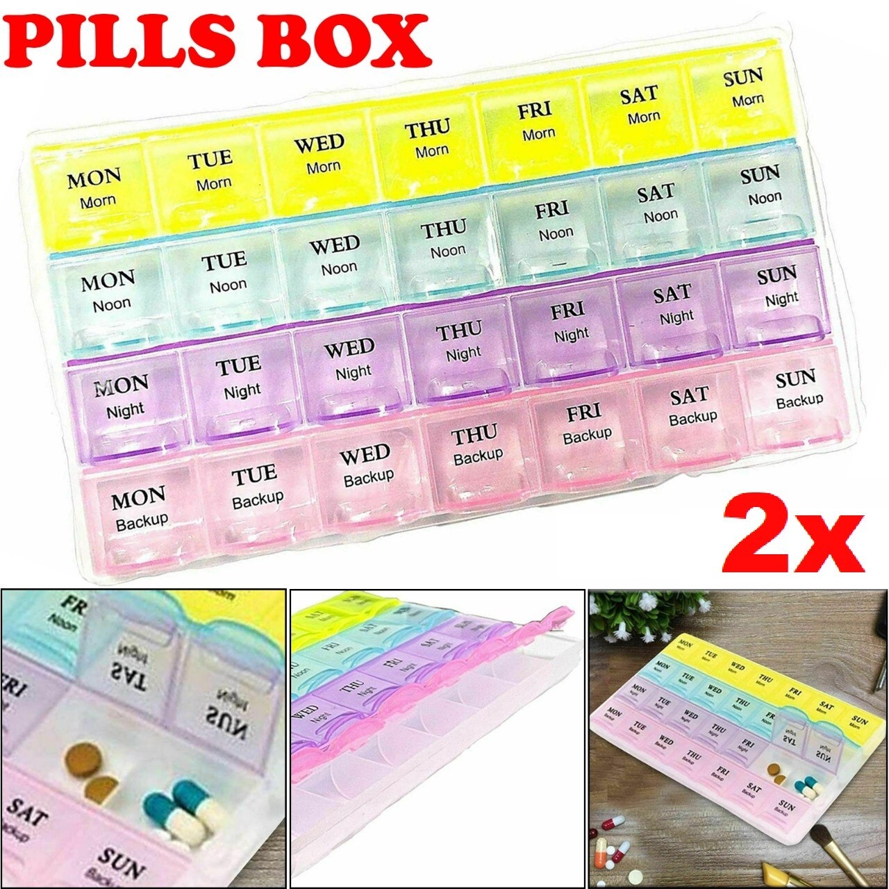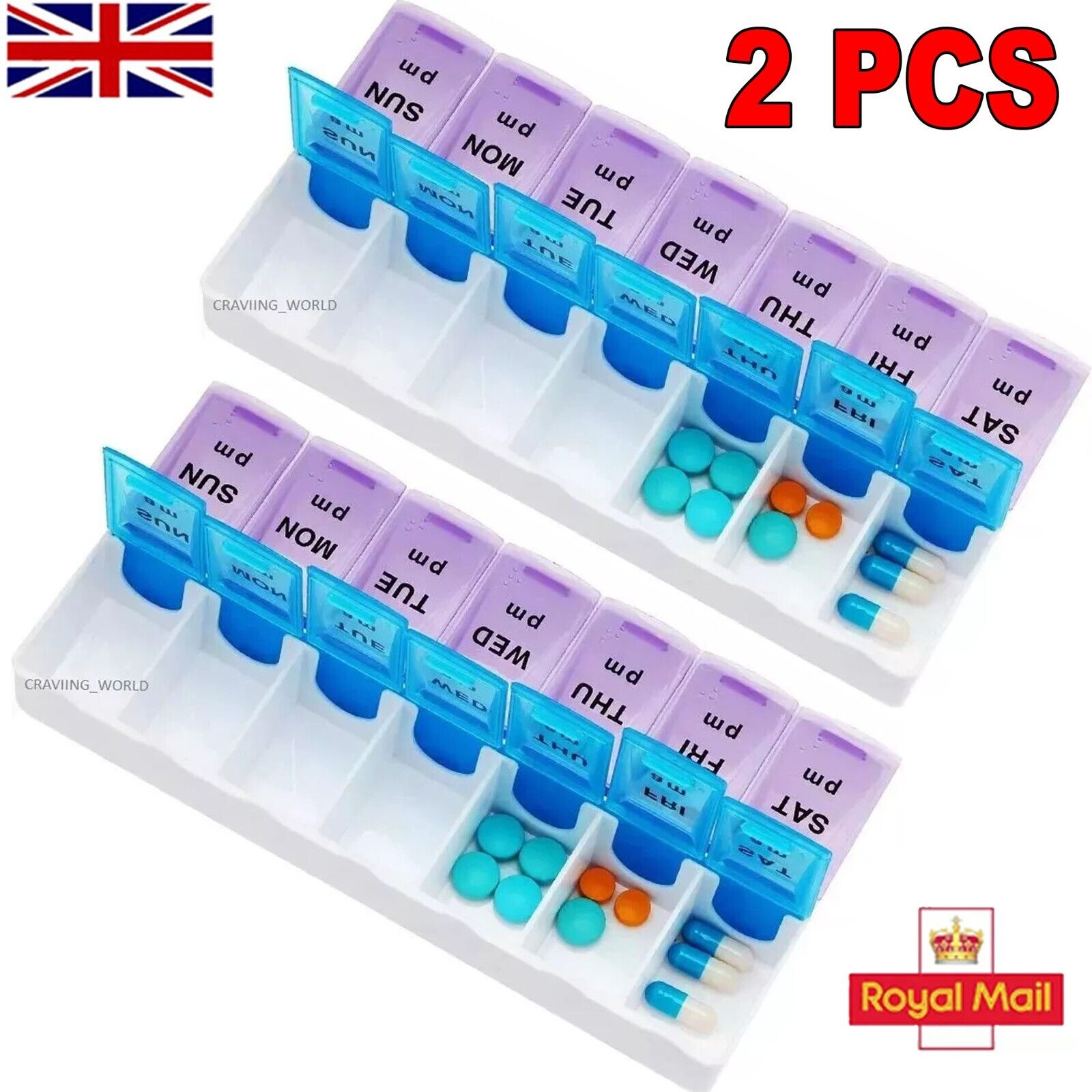 2x 7 DAY WEEKLY PILL ORGANISER Box Day & Night Tablet AM PM Medication Dispenser