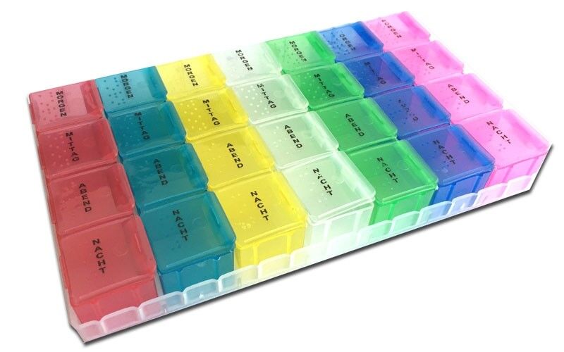 7 DAY PILL BOX ORGANISER DOSSET BOX 4 DAILY COMPARTMENTS 28 SLOTS BRAILLE