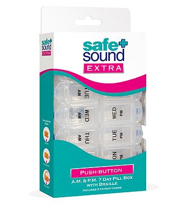 Safe&Sound Extra Push Button AM/PM 7 Day Pill Box With Braille