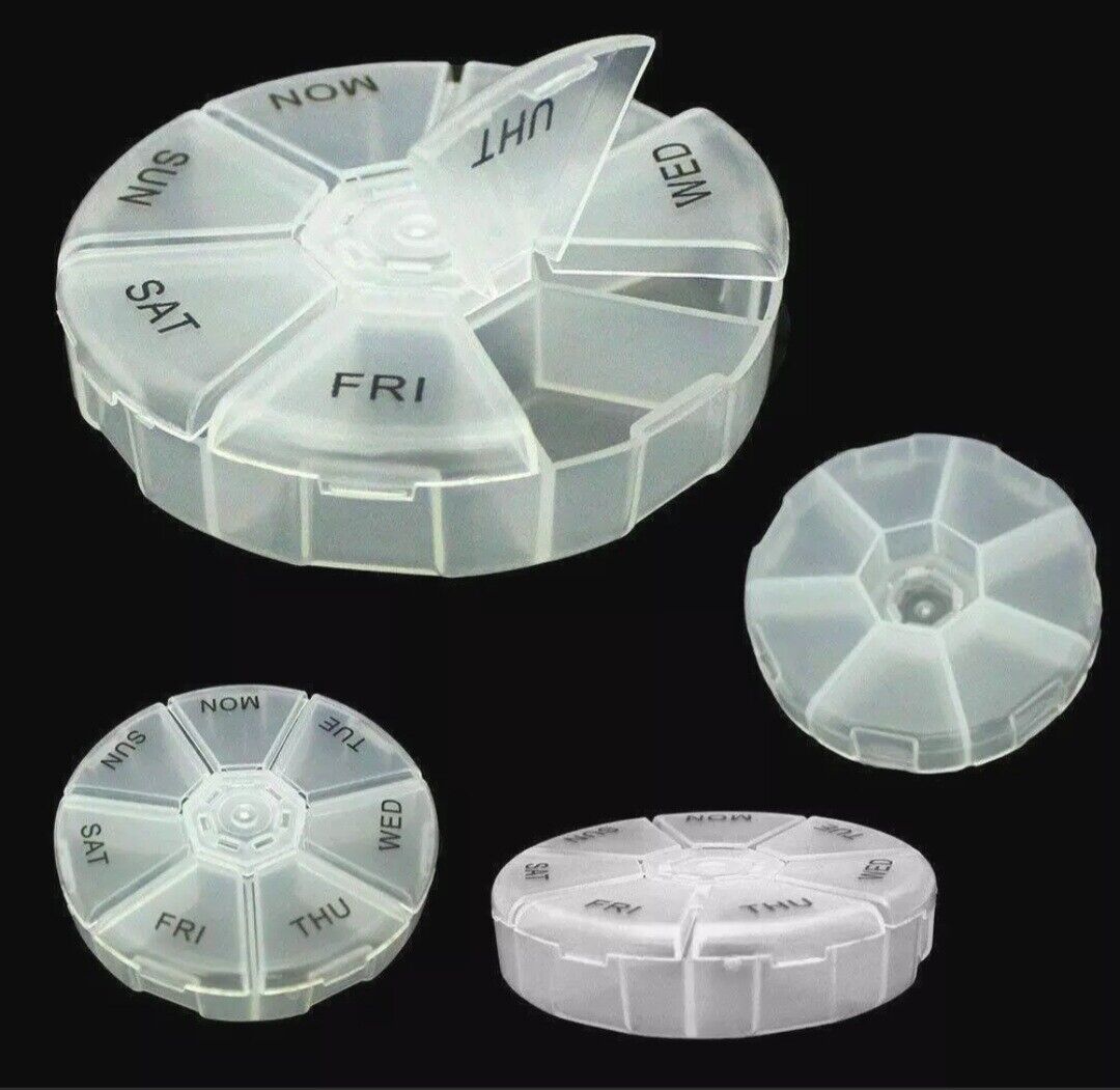7 Day Pill Box Travel Round Weekly 7 Compartments Round Moisture Resistant for Borset