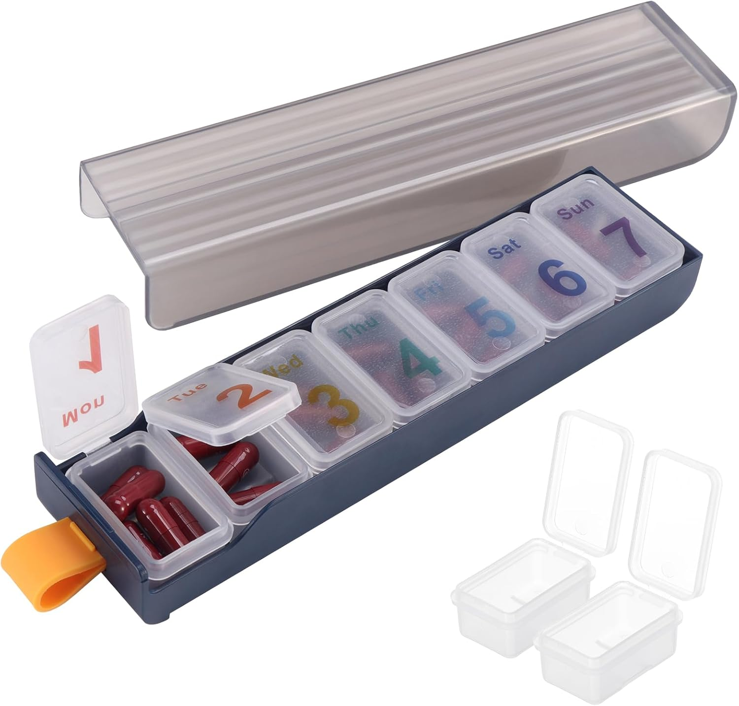 7 Day Pill Box Organizer - Portable Daily Medicine Container for Pills, Airtight Travel Holder Adult Homes for Kids Soul