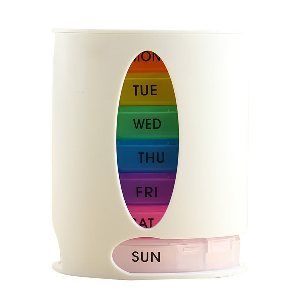 Weekly Round Pill Box - 7 Day Portable Pill Box with 7 Compartments Ideal for Pills, and Sweets | Automatic Rotating Pill Storage for Travel and Quotid Use