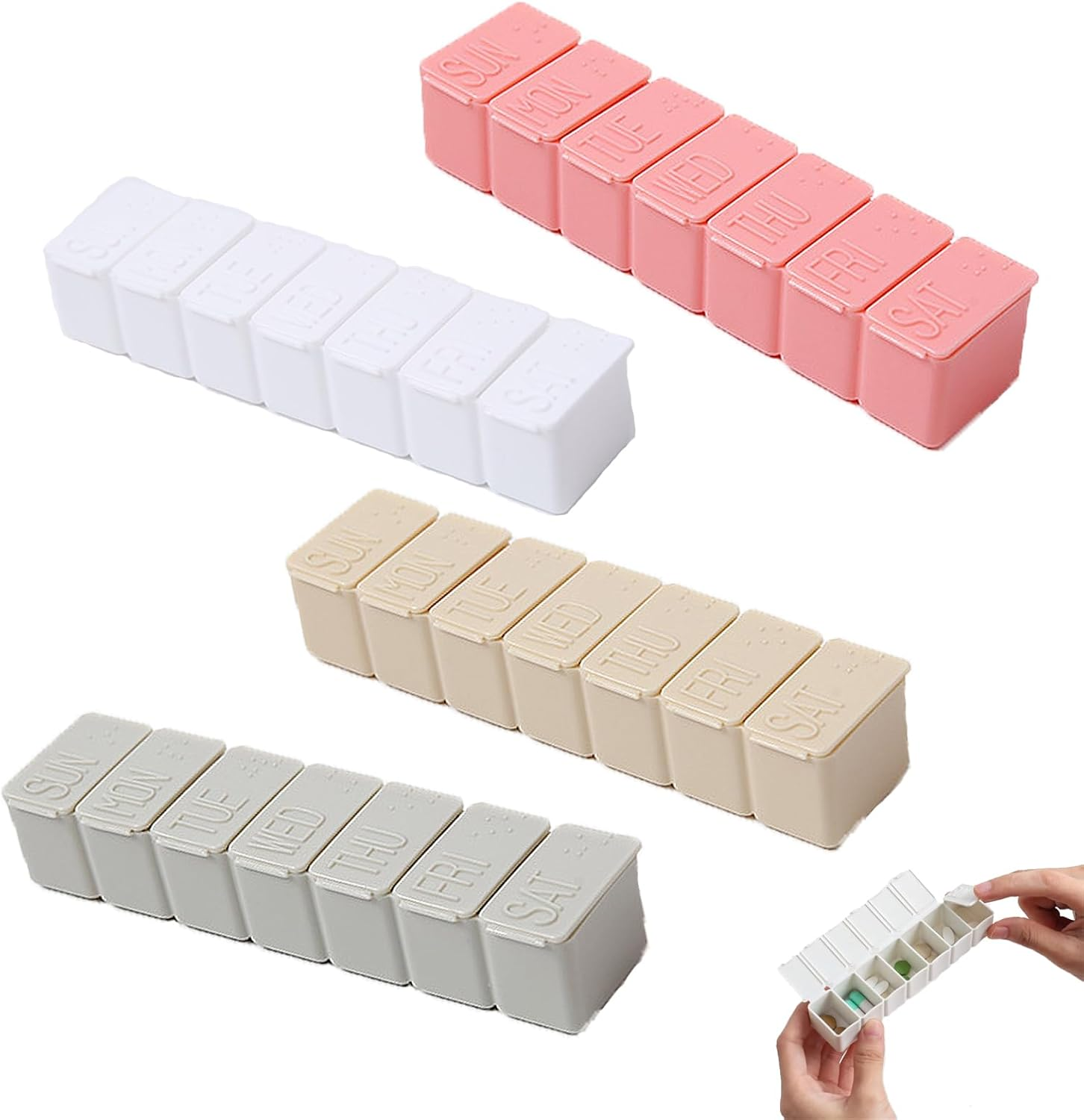 4PCS Weekly Pill Box 7 Day, Pill Box Small 7 Day, Pill Dispenser 7 Day, Vitamin
